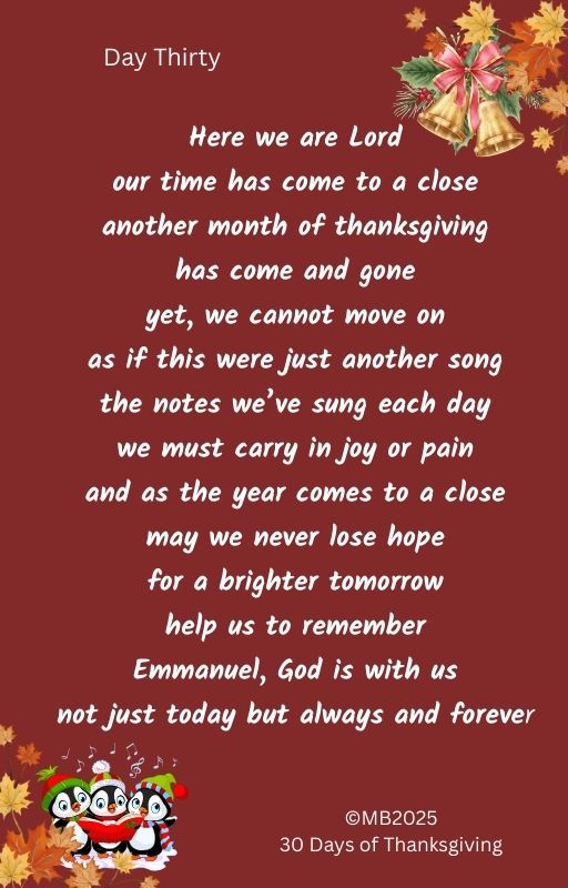 The Last Song ~ 30 Days of Thanksgiving Poems Day Thirty https://marciewbridges.com/?p=6187&preview=true #NovemberPoems #Thanksgiving25 #Poetry Share on X
